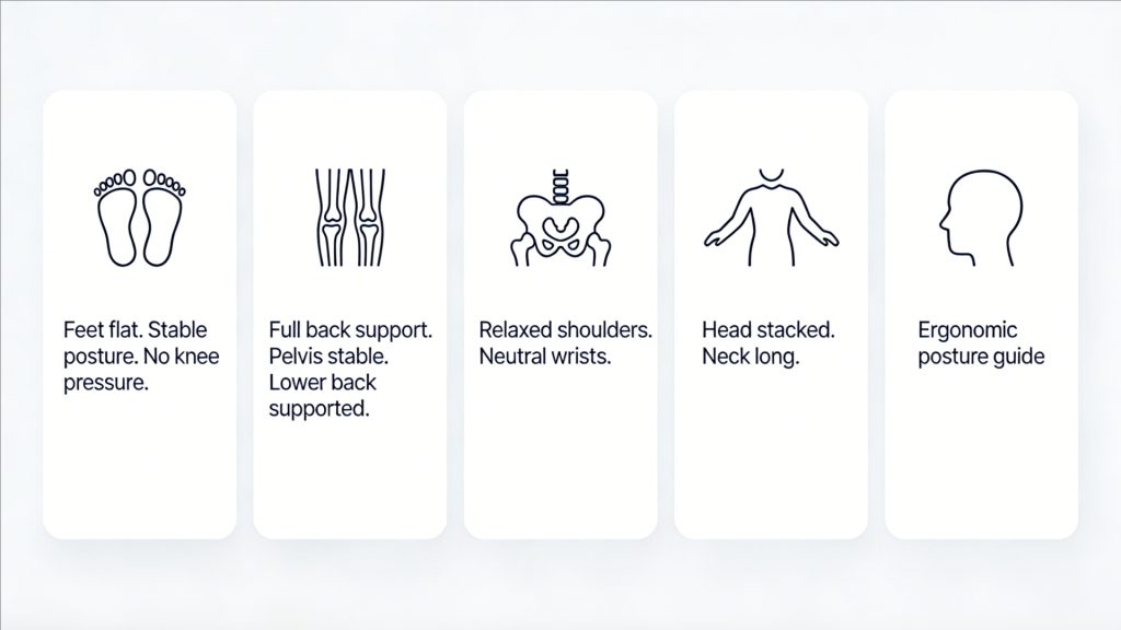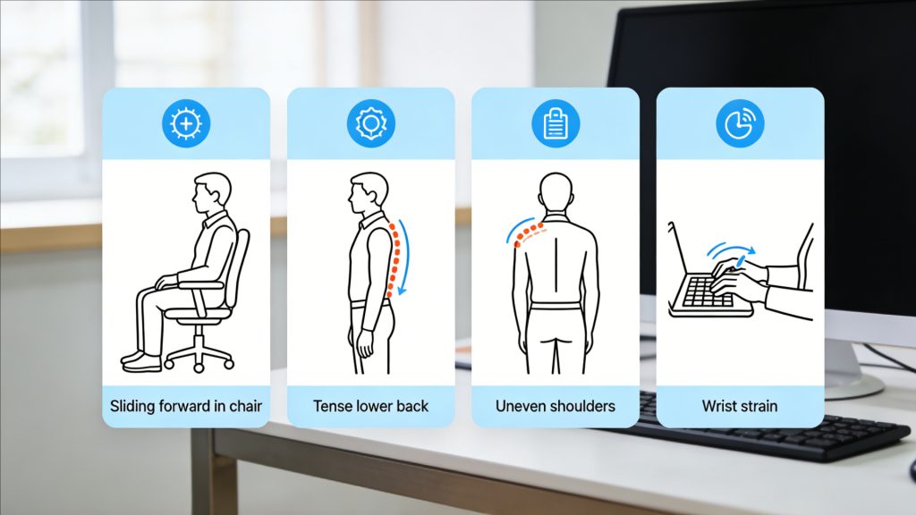 When you notice any of these, do not “try harder” to sit straight. Re-check seat height, seat depth, and how close you are to the desk.