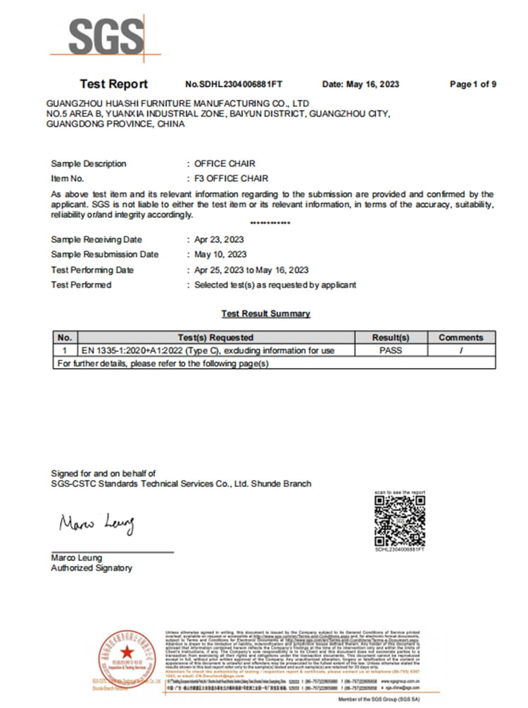 EN1335 certificate ensures your office chair meets safety & ergonomic standards for a comfy, healthy workday!