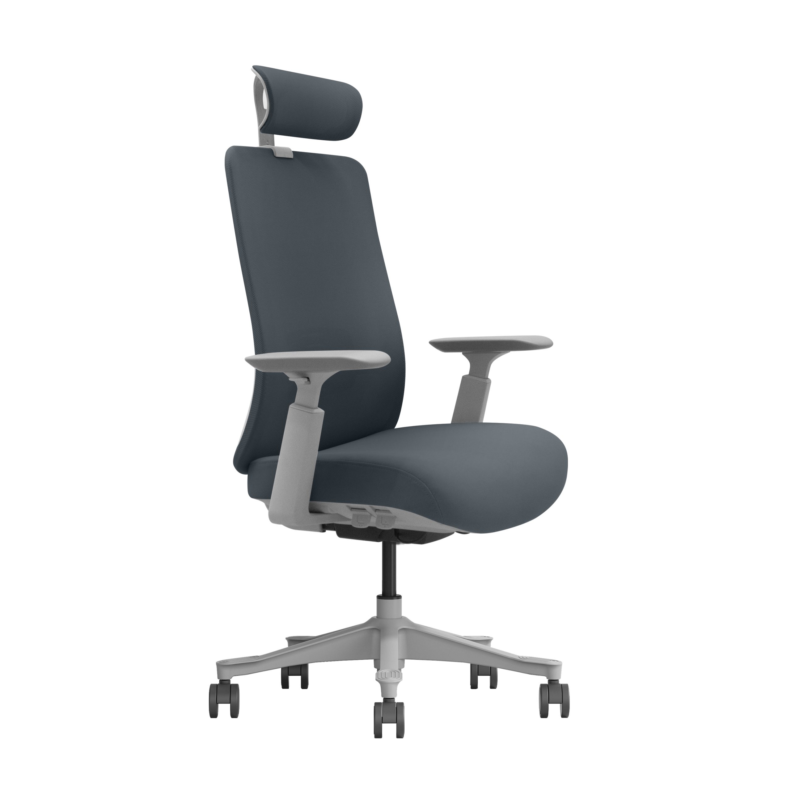 It offers a high-back design with synchronized tilt and a waterfall seat edge to support posture and reduce leg pressure during long working hours.