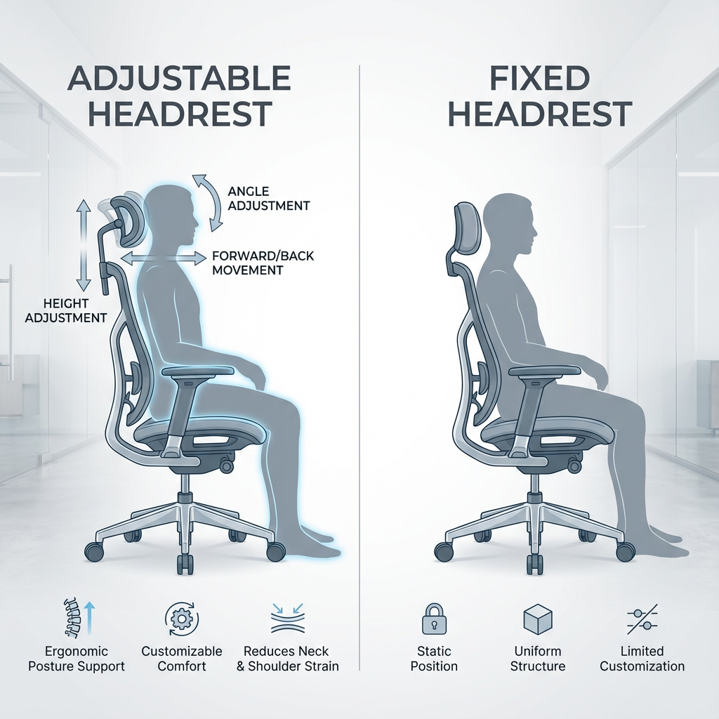 Fixed headrests offer visual continuity but limited ergonomic flexibility, making them suitable mainly for uniform seating environments.