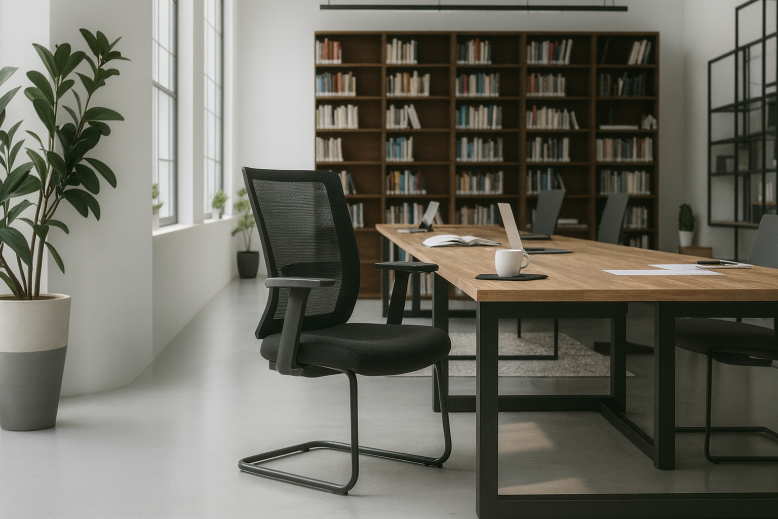 A strong library chair combines ergonomic design, durability, and acoustic stability. Mesh office chairs offer breathable back support for long sessions, while visitor chairs provide quiet, stable seating for open reading areas. For flexible rooms and workshops, lightweight training chairs or silent swivel task chairs allow quick movement without disturbing others.