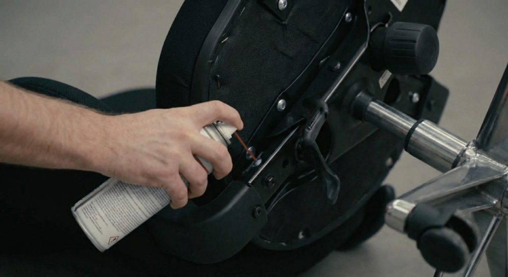 Avoid spraying fabric, mesh, or foam. Proper lubrication not only reduces noise, but also slows long-term wear.
