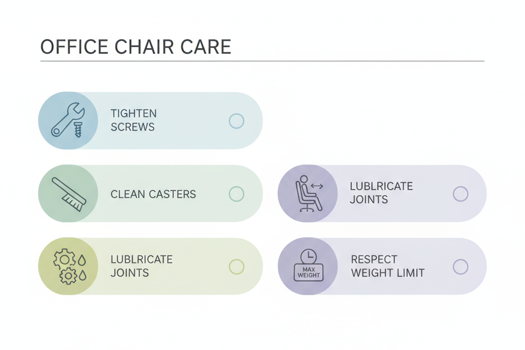 Preventive maintenance dramatically extends a chair’s quiet lifespan.