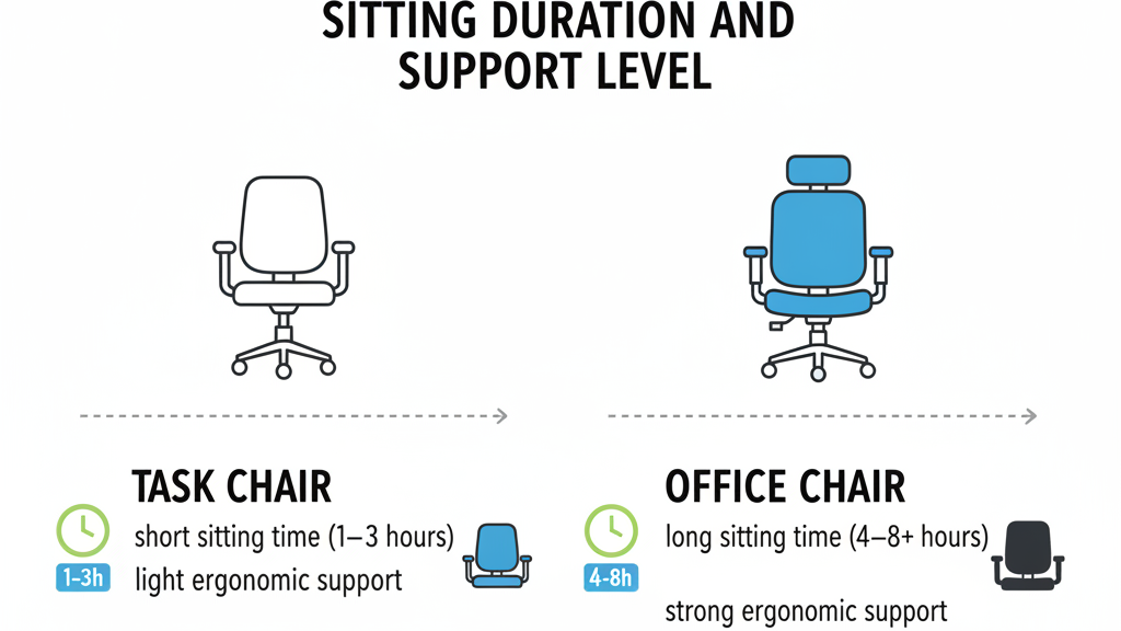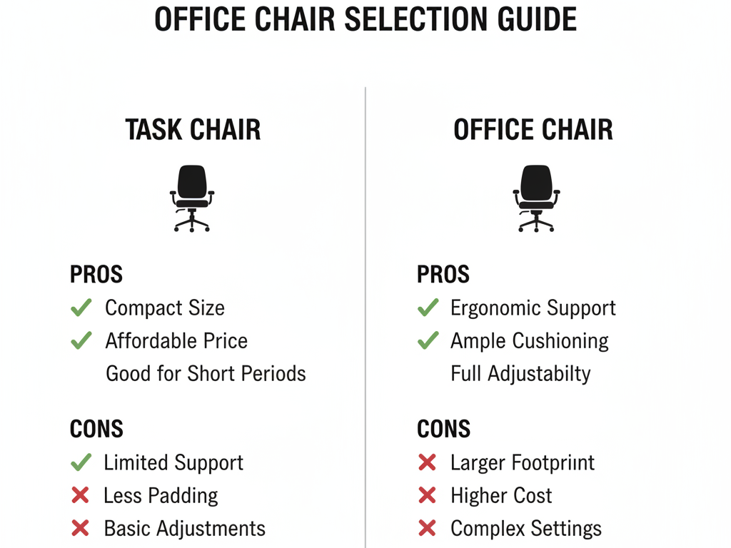 If your work involves short, flexible tasks, a task chair is a practical and cost-effective solution. If you spend long hours at a desk, an office chair provides better comfort, support, and long-term health benefits.